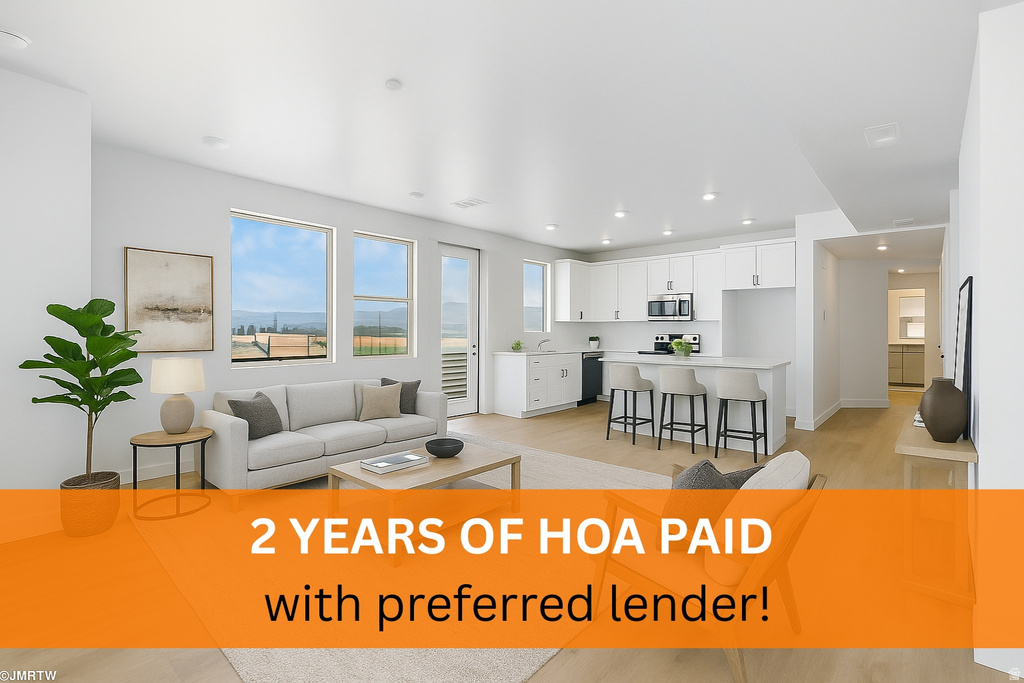 Modern Main Level condo across from Downtown Daybreak. Walk to shops, dining, parks, & entertainment. Open floor plan with natural light & contemporary finishes. Limited-time selections available. Next to UTA TRAX Red Line. Visit sales office at 5263 W Reventon.